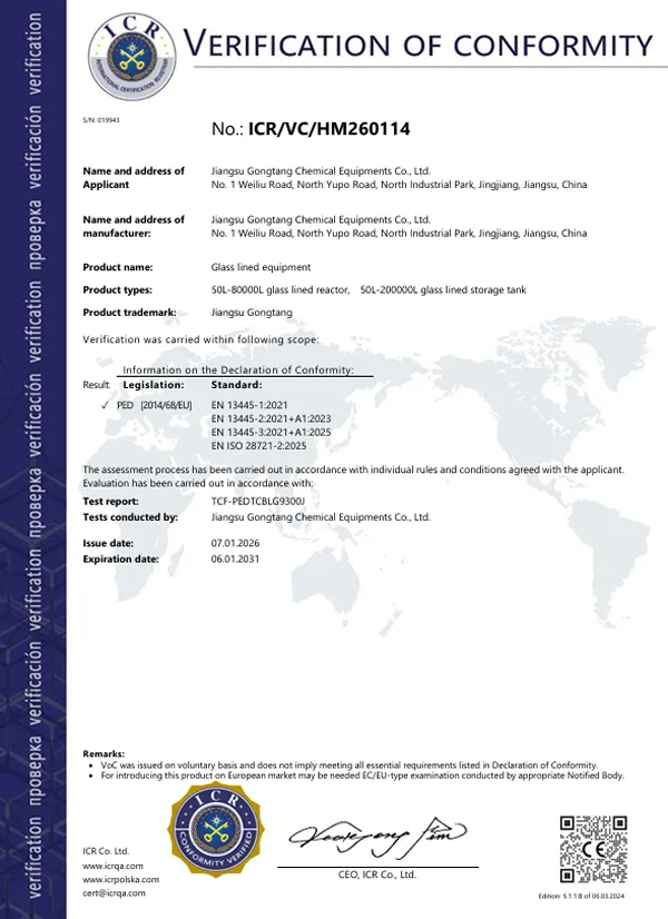 Pusat Reka Bentuk Kejuruteraan Taizhou untuk Reaktor Berlapis Kaca
